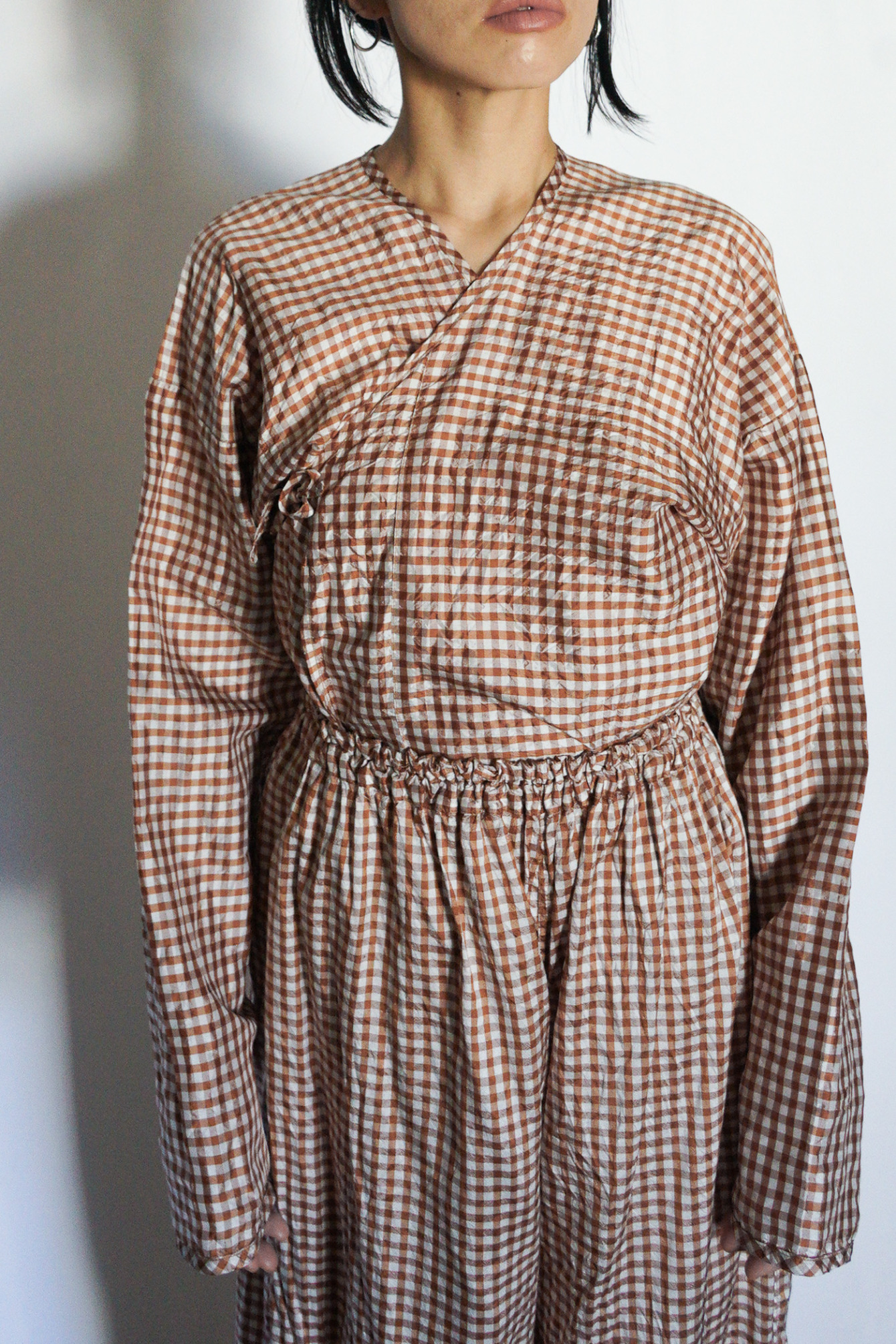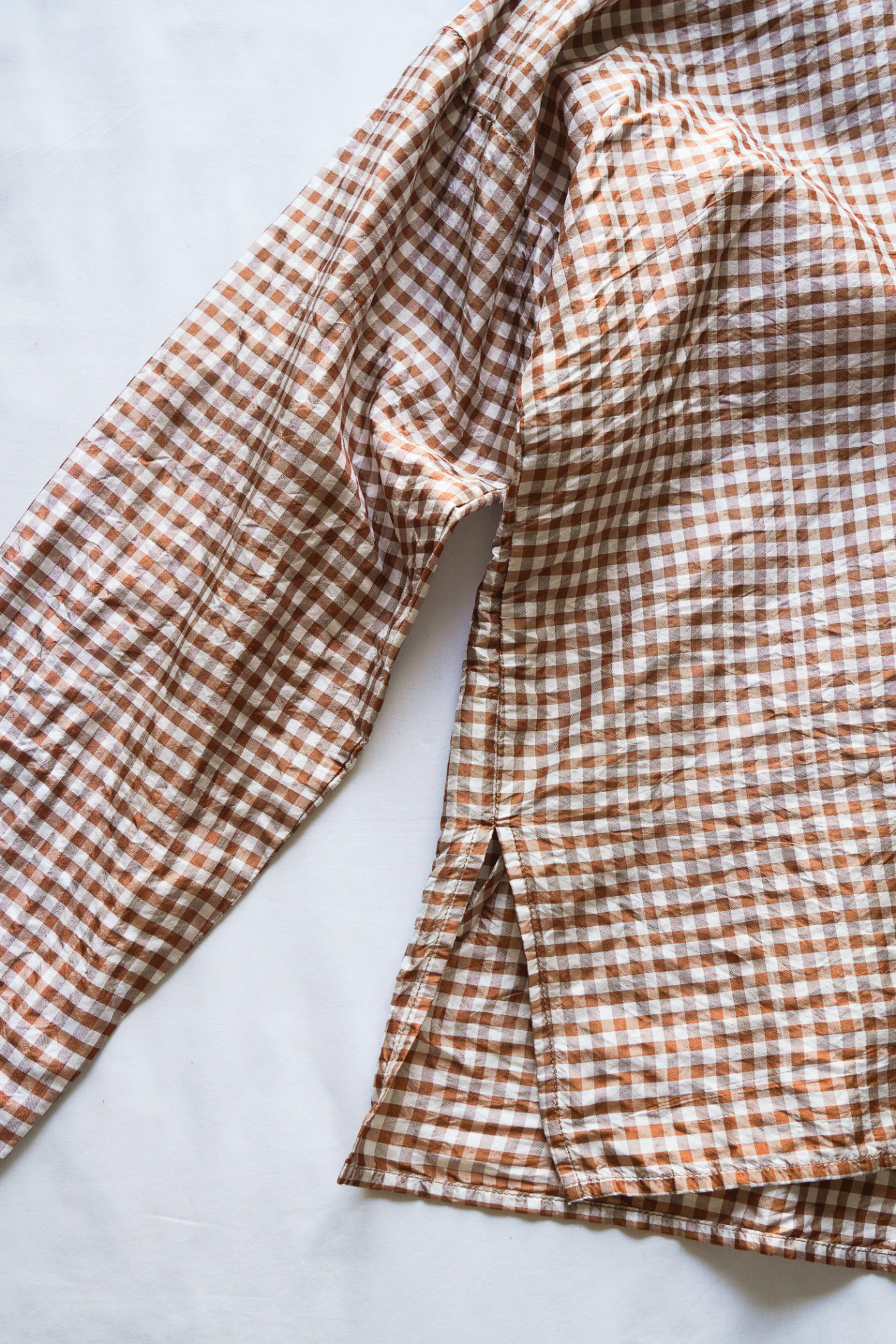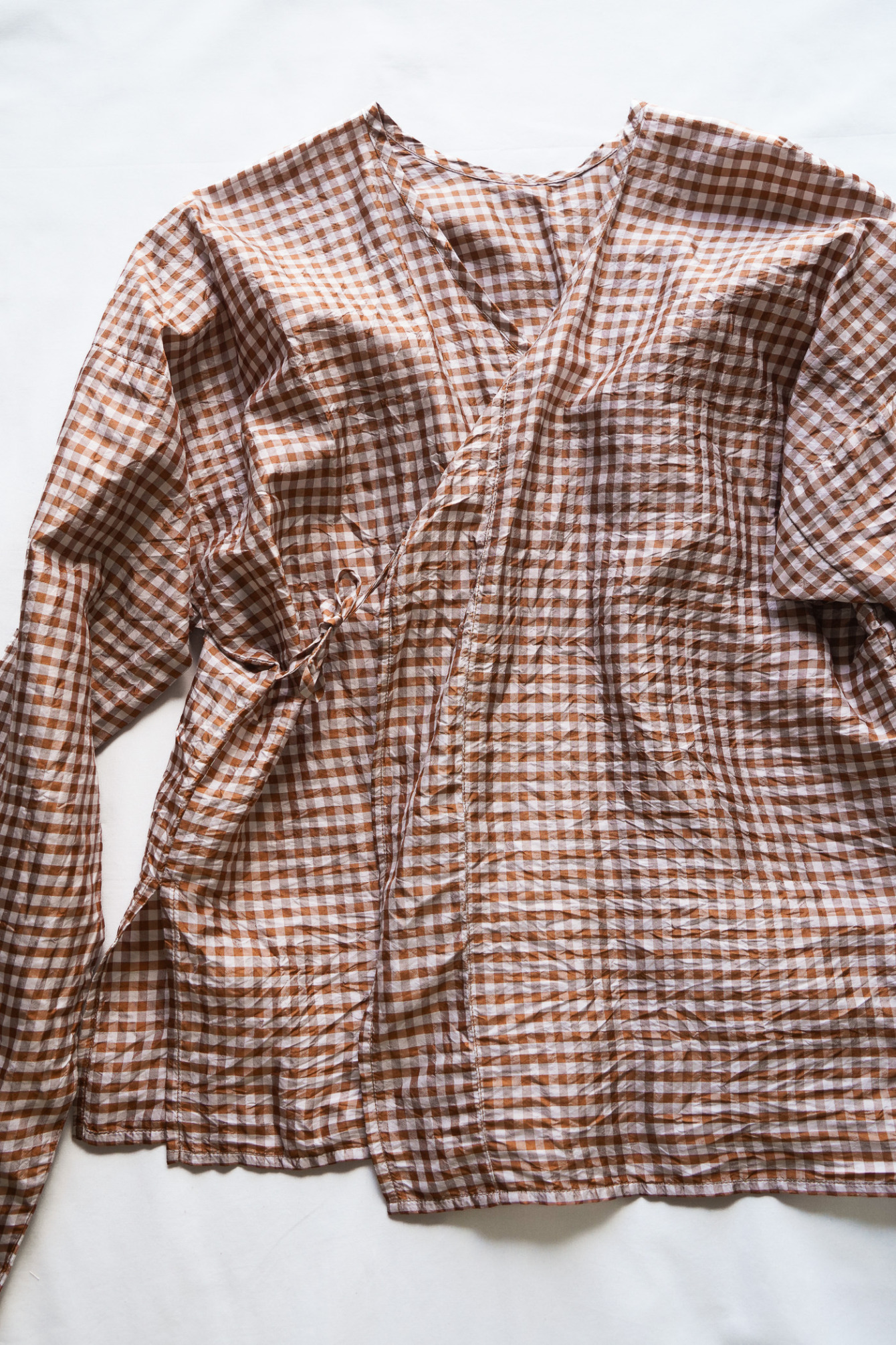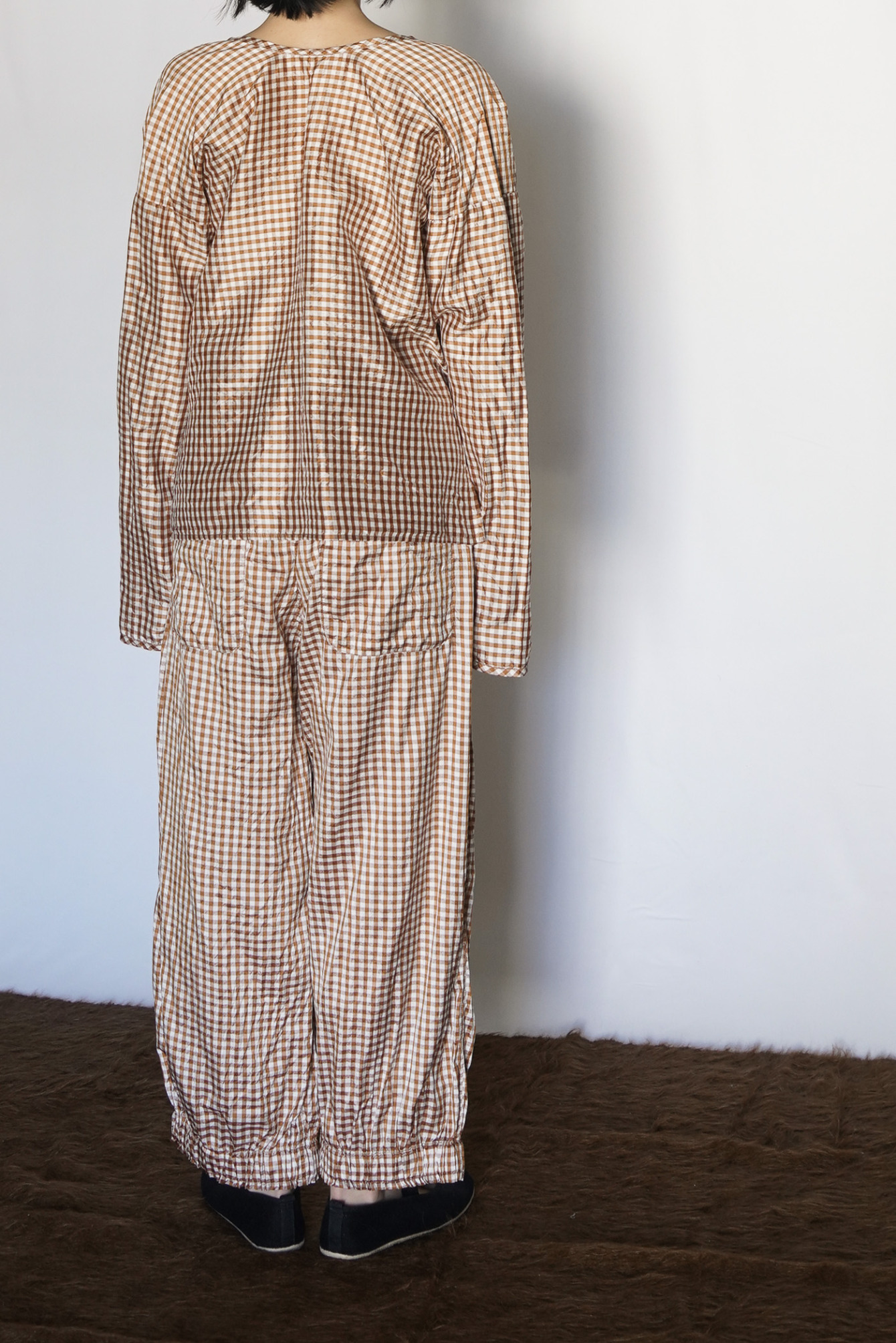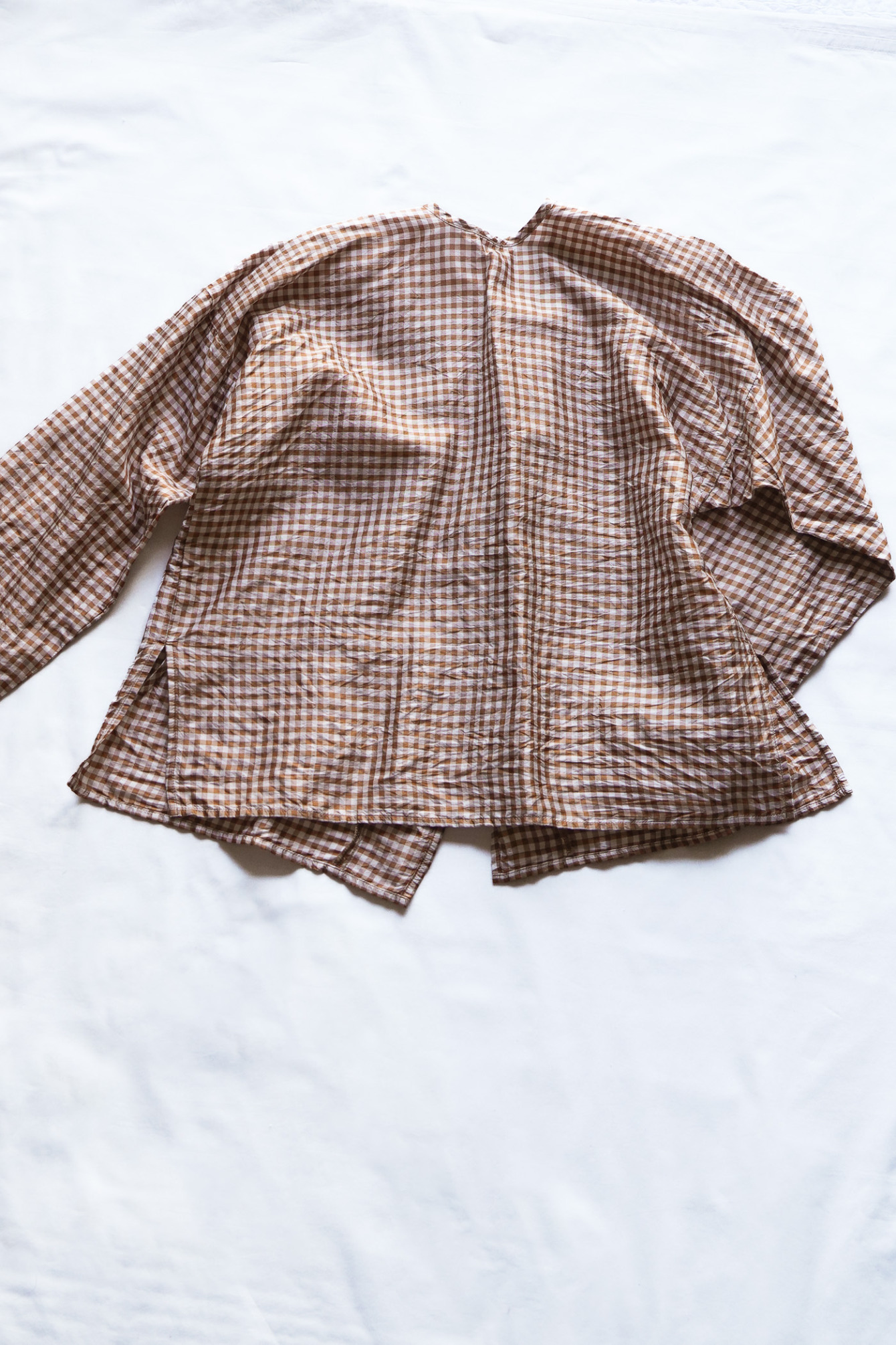 Gingham Check Thai Silk KOREAN Blouse [BRN]
