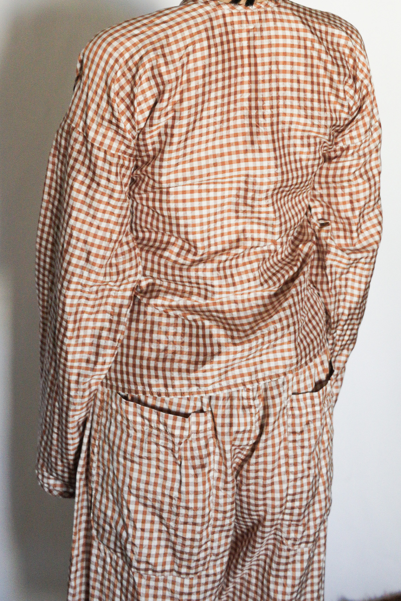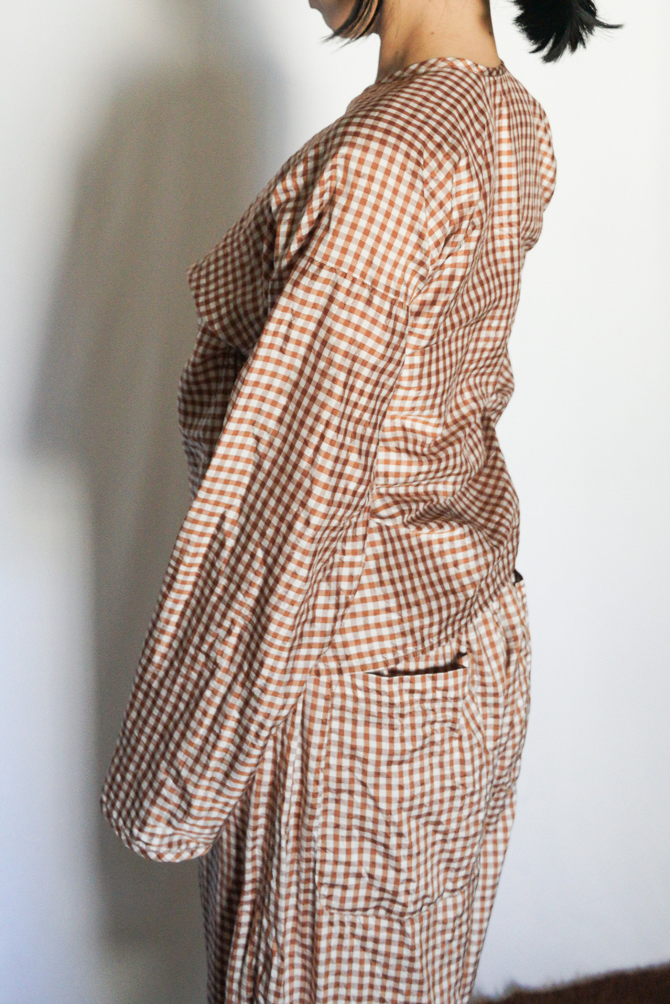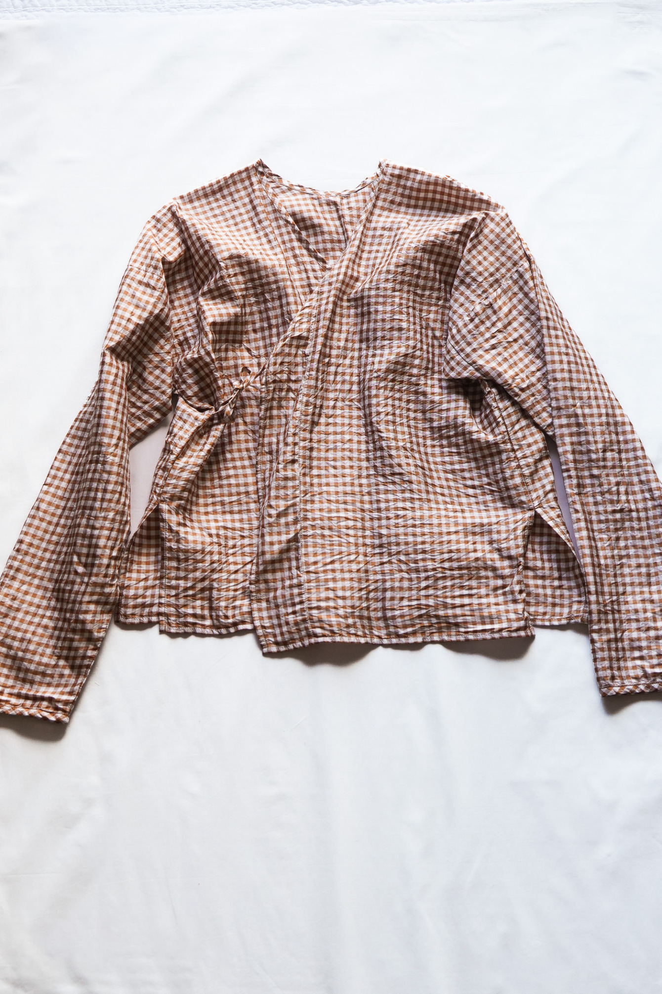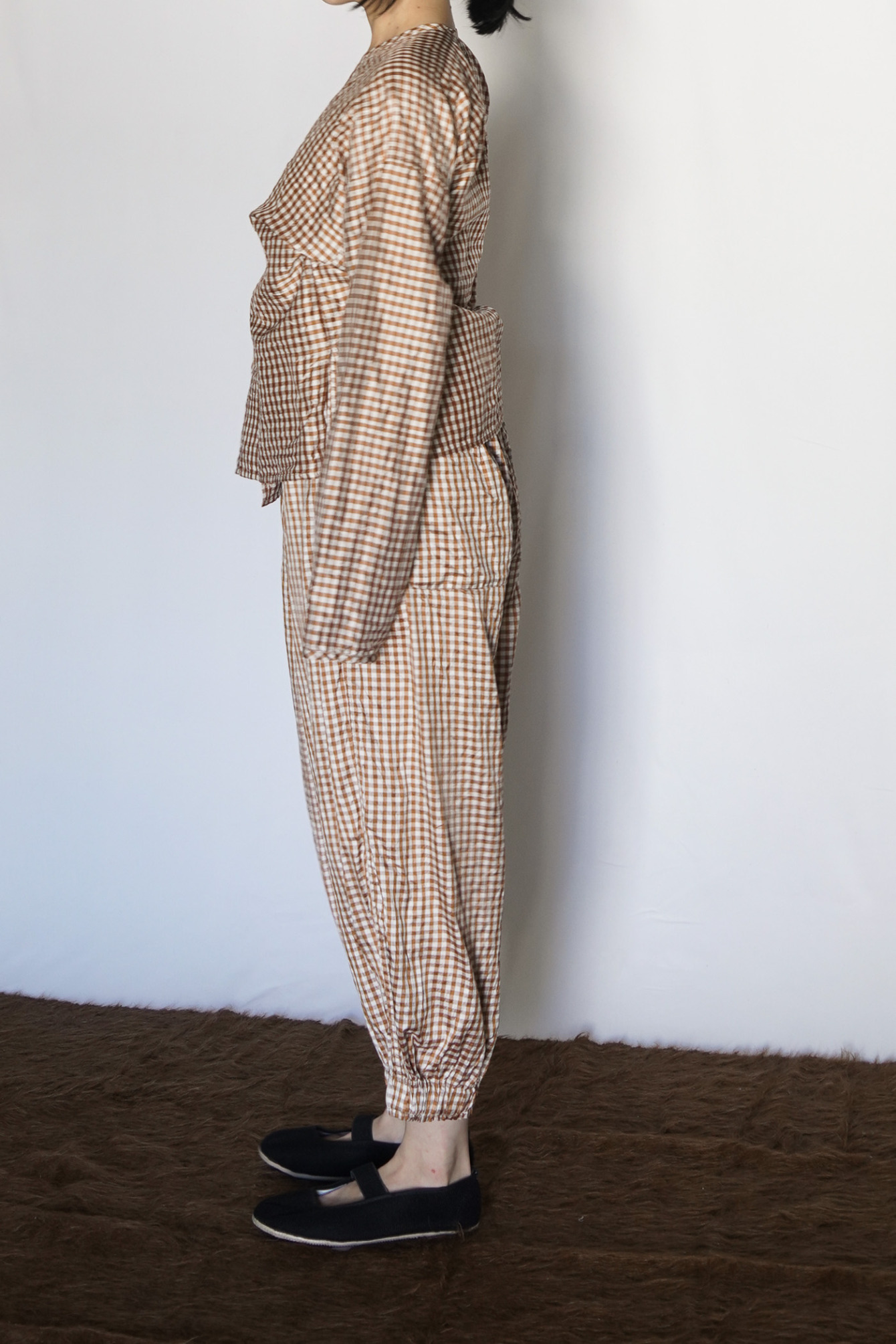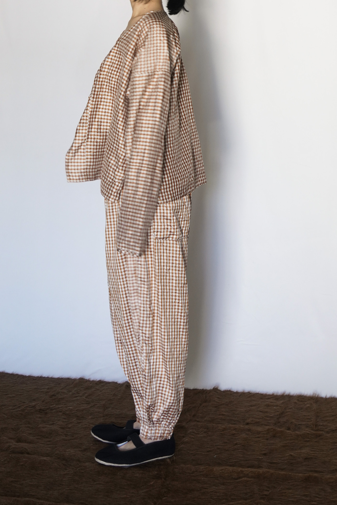 Gingham Check Thai Silk KOREAN Blouse [BRN]