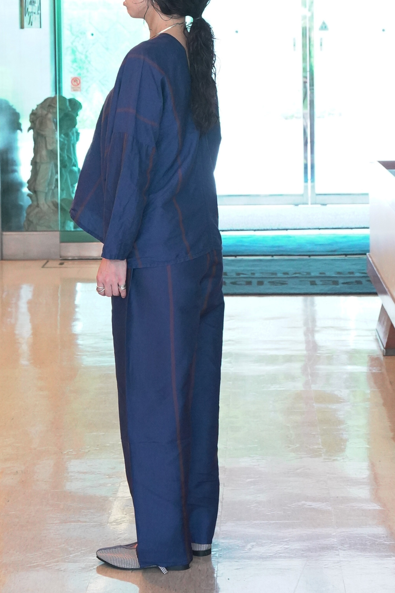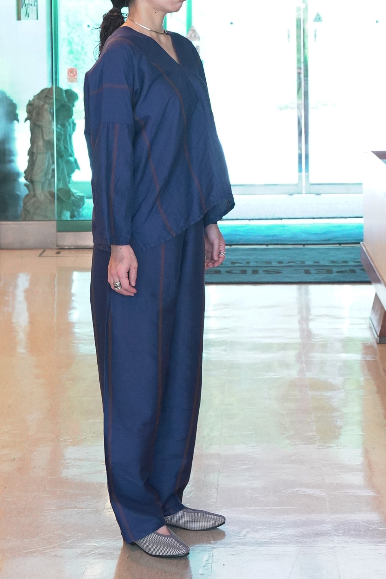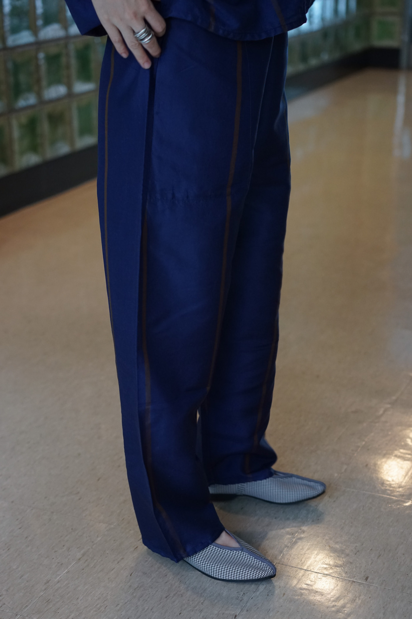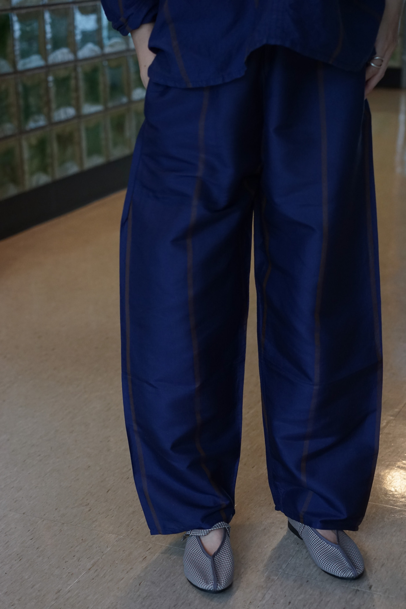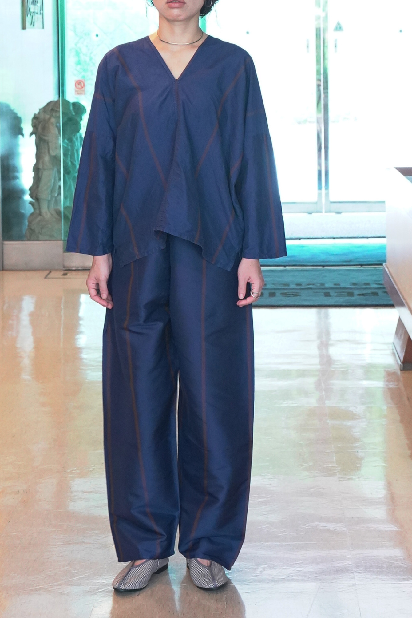 Stripe Thai Silk -iroiro ORG- Meditation Pants [NVY]