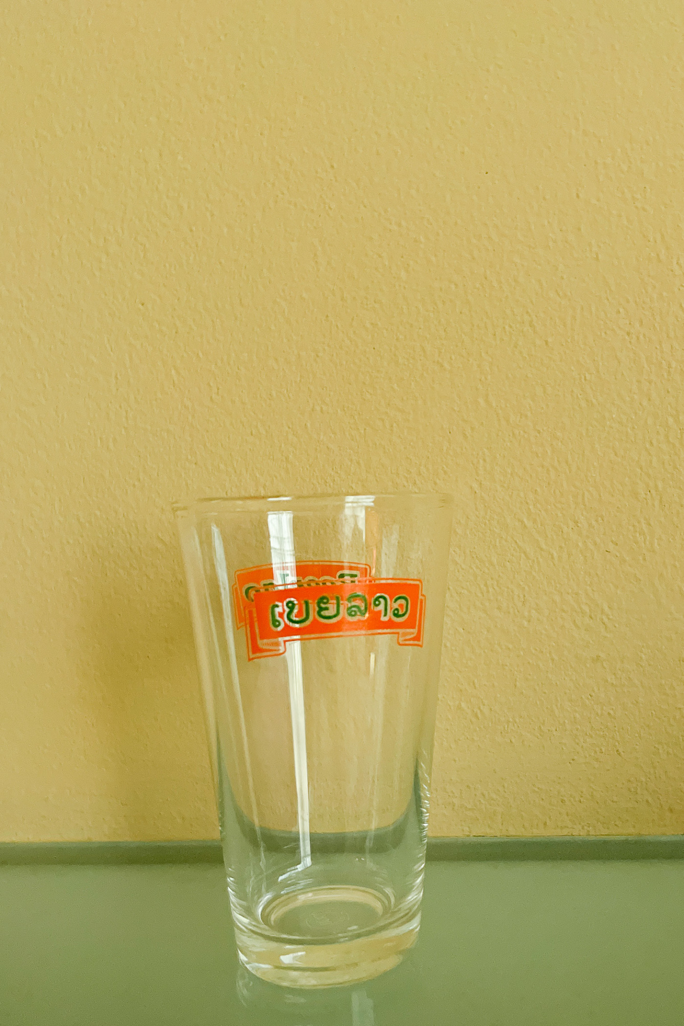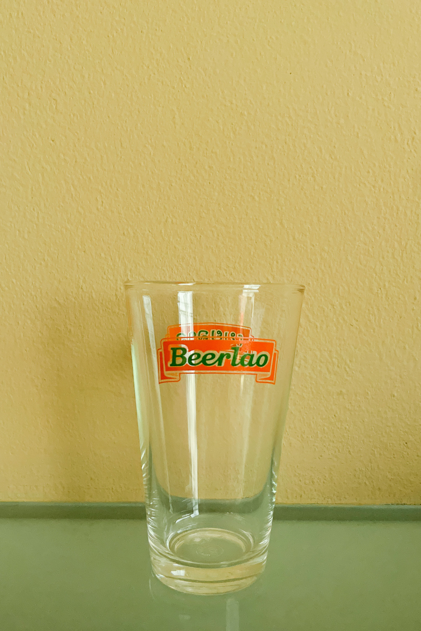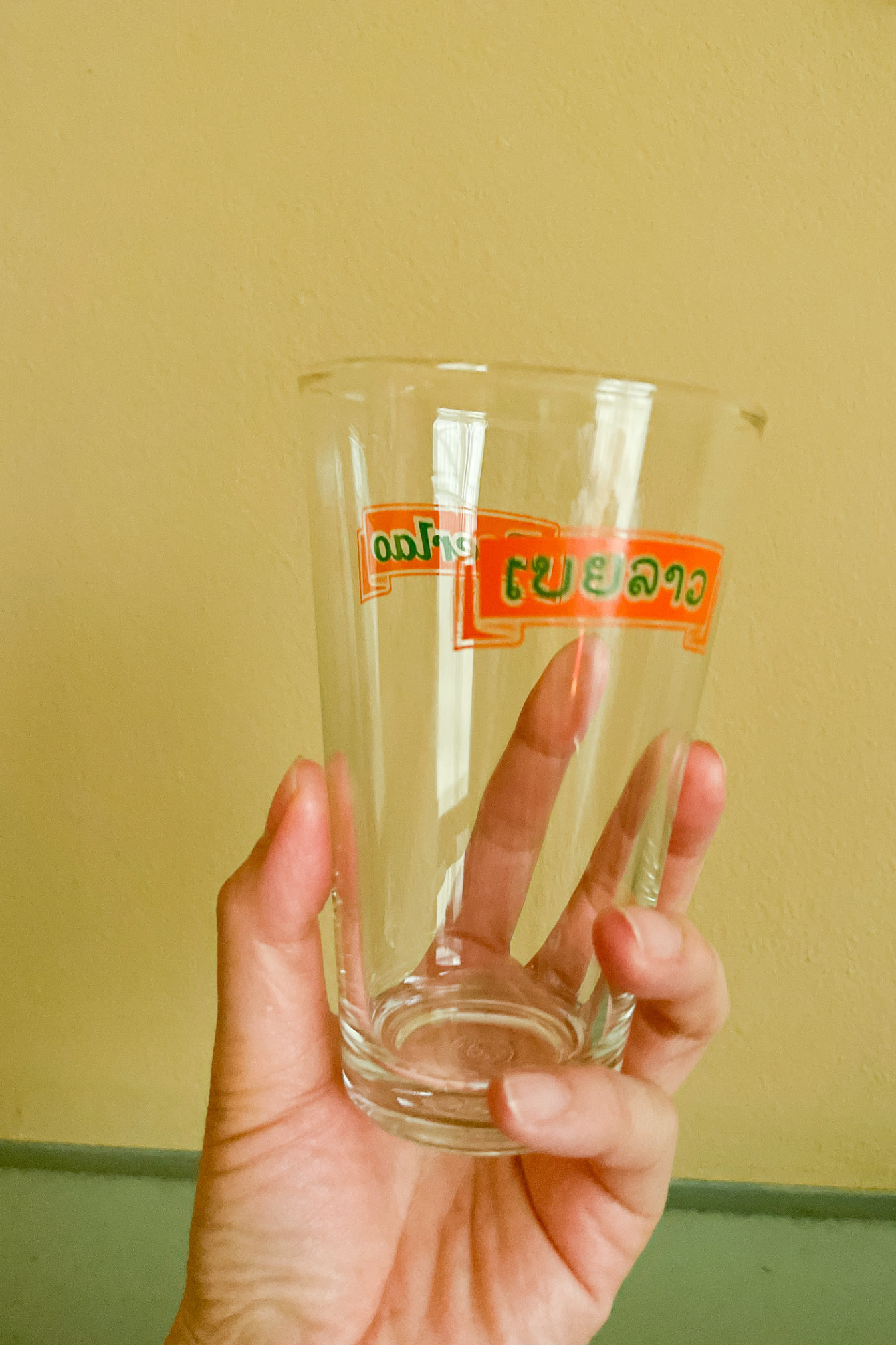 ラオスが誇る世界中で大人気のビアラオのビールグラスです。現行の虎頭のイラストの入ったロゴのグラスではなく、ビアラオとラオス文字のロゴの入ったグラス。