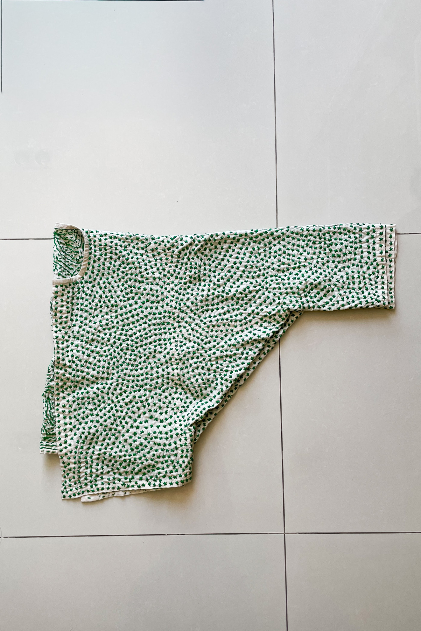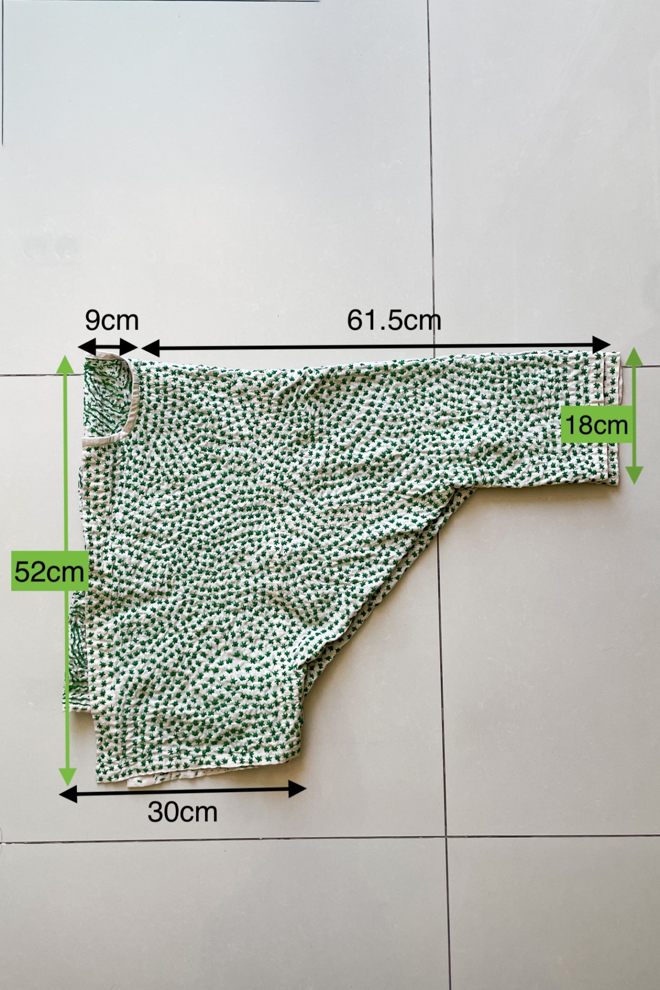 サイズ感は寸法記入写真をよくご覧いただいて着用感などもお持ちの衣類などと比較してご確認ください。可愛い緑の小花柄のボレロ。