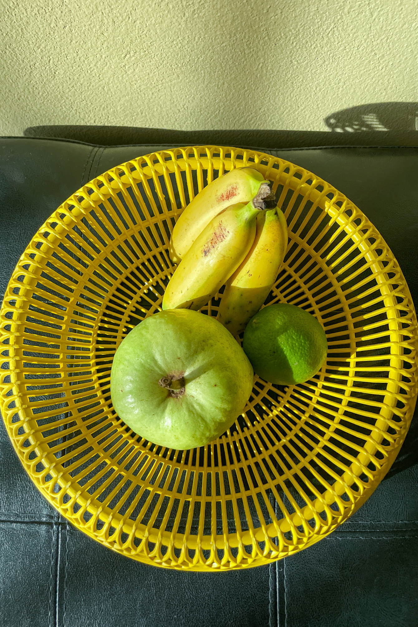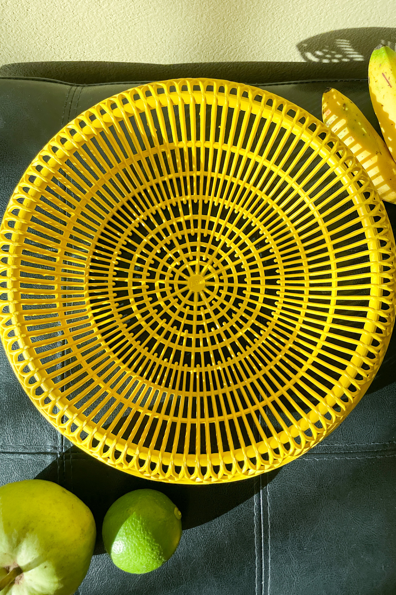 プラスチックでPOPな雰囲気ですがどんなインテリアにしっくりと馴染むデザインだと思います。フルーツバスケットとしていますが色々と日用品を収納しておくのにも良さそうなバスケットです。