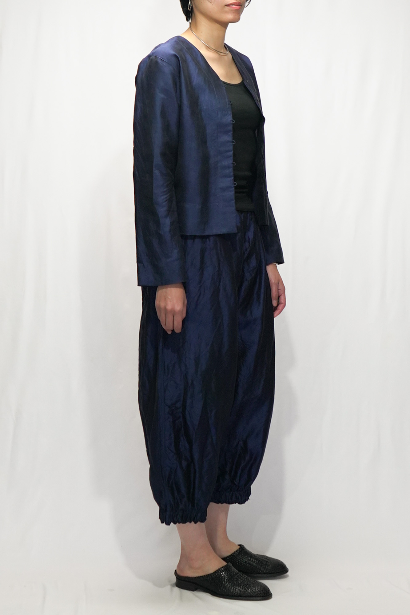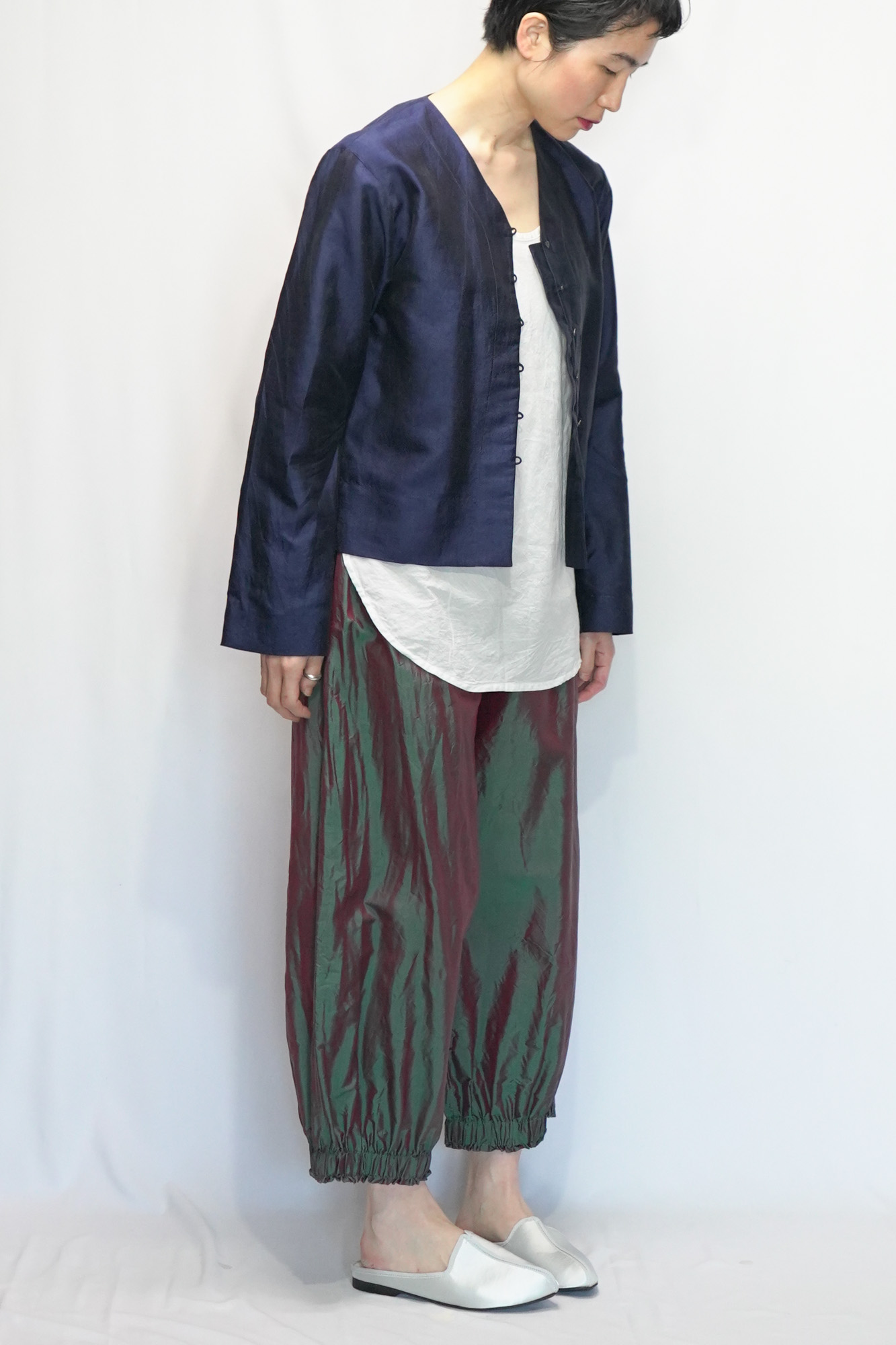 col.NVY, size.L,model=164cm | BOTTOMS... Thai Silk New Kung-fu Pants ,col.D.KKI | INNER... NS Cotton KINTARO Camisole ,col.WHT,size.M