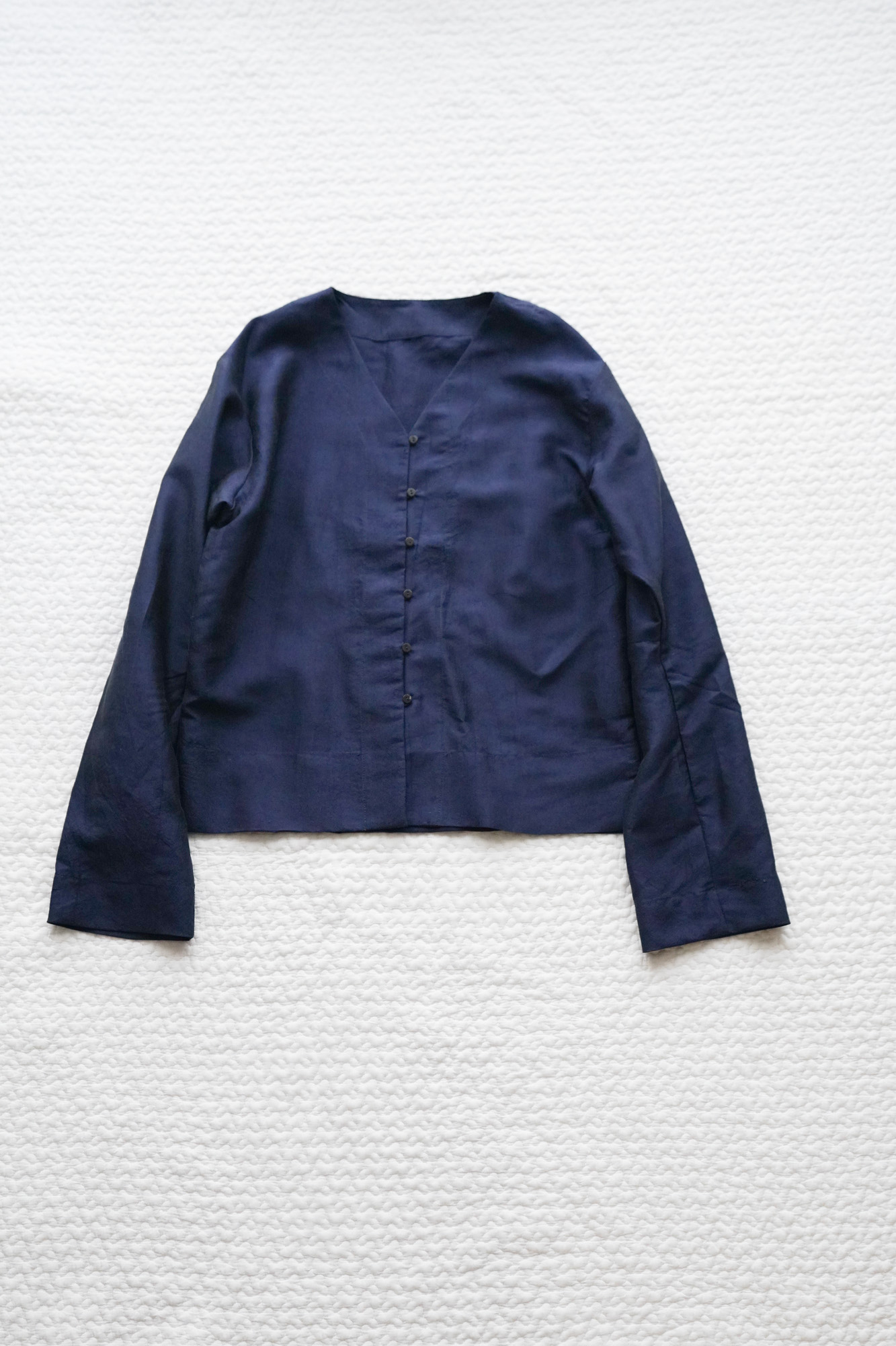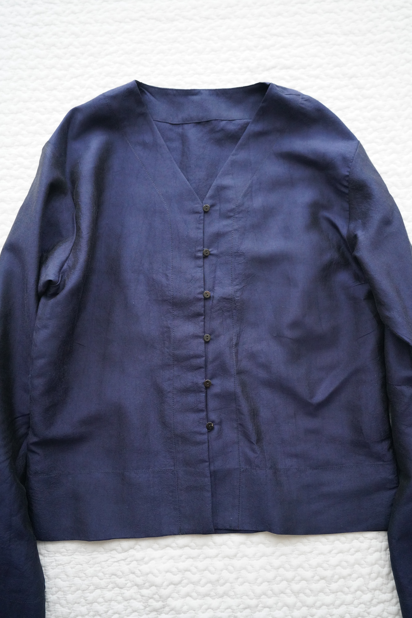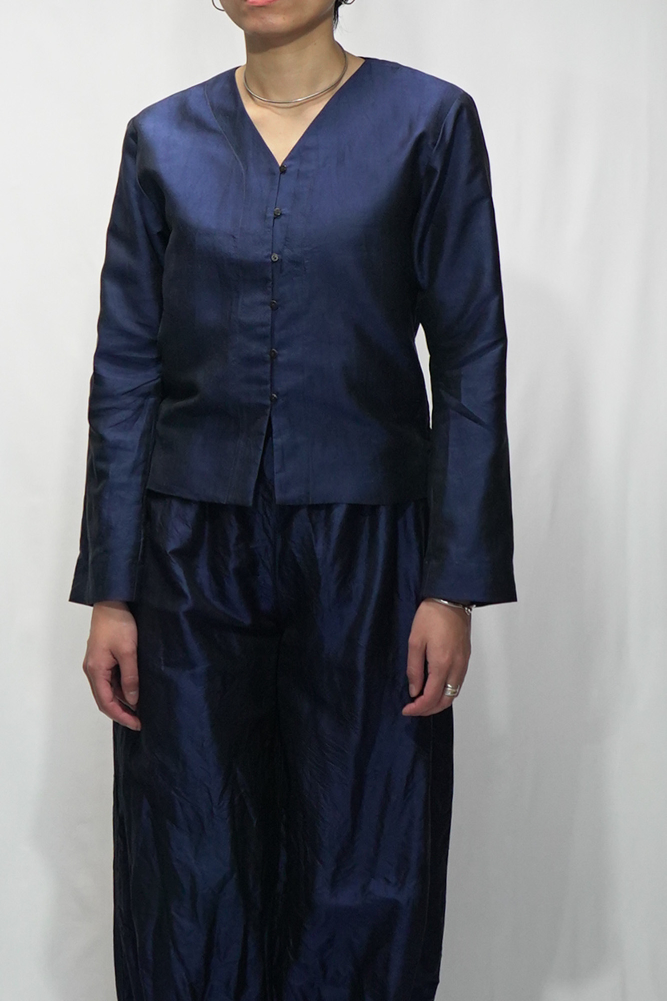 Thai Silk V-Neck Blouse [NVY]