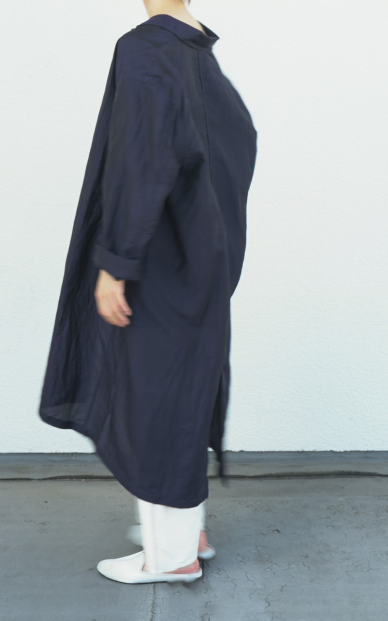Triple Gauze Cotton No-Collar Long Jacket [BLK]
