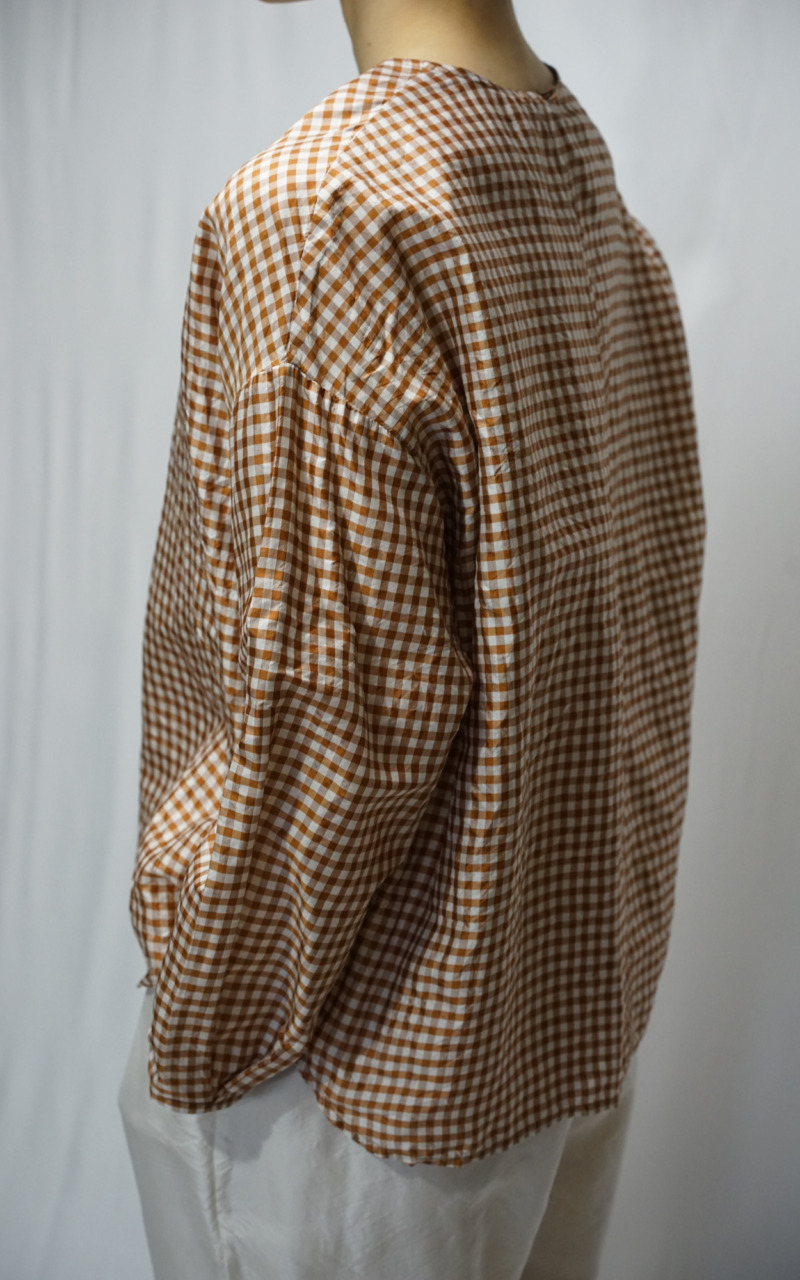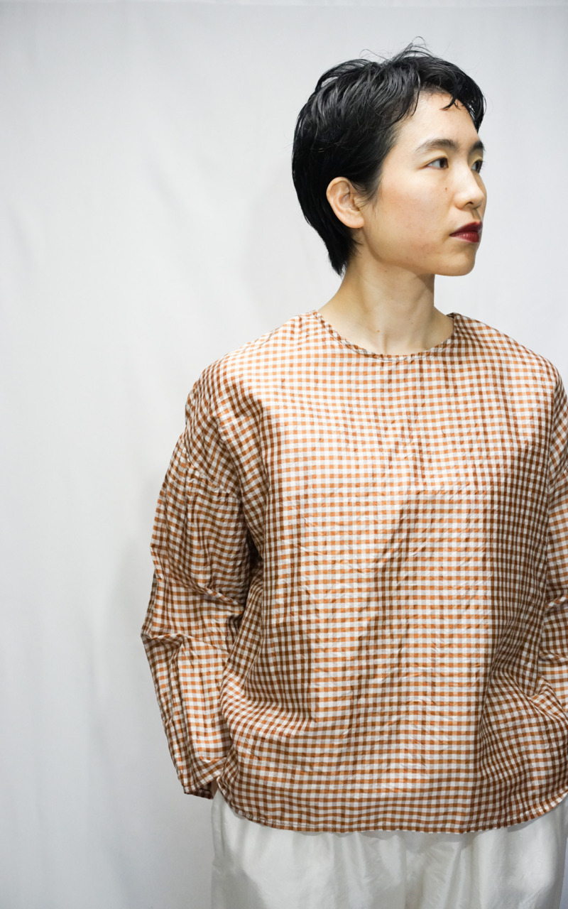 Gingham Check Thai Silk Pullover Shirts [BRN]