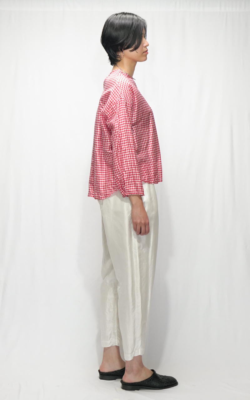 Gingham Check Thai Silk Kung-Fu Pants [RED]